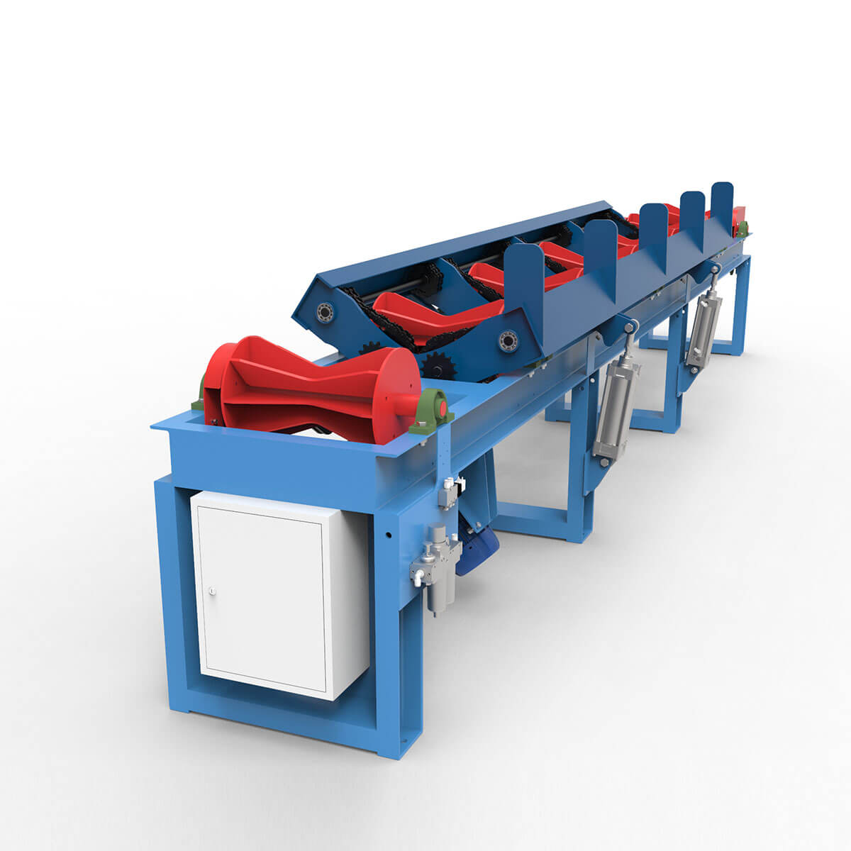 Рольганг-кантователь предназначен для приема бревен с загрузочной эстакады или разгонного рольганга с последующим кантованием и подачей в бревнопильный станок